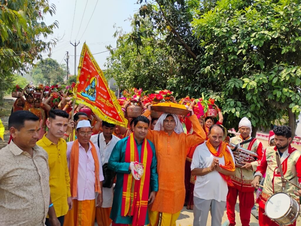 नवरात्र पूजन मे प्रथम दिन शैलपुत्री इन्ही की पूजा और उपासना की जाती है।इस दिन योगी अपने मन को मूलाधार चक्र में स्थित कर साधना करते है।उन्होंने कहा कि भक्त पूजा के समय लाल और गुलाबी रंग के वस्त्र धारण करे। मां शैल पुत्री का लाल रंग बहुत प्रिय है।इन्हे लाल रंग की चुनरी नारियल और मीठा पान भेट करे।शैल पुत्री के पूजन से संतान वृद्धि और धन ऐश्वर्य की शीघ्र प्राप्ति होती है। मां सर्व फुलदायी है।उन्होंने मानव जीवन में भागवत कथा श्रवण को नितांत आवश्यक बताया। कलश यात्रा में ग्राम प्रधान निमिषा डसीला,जीवन सिंह, पूरन डसीला, राजेंद्र सिंह, जगदीश सिंह, सुरेंद्र सिंह, हरीश सिंह, चंदन सिंह , नंदन सिंह, राम सिंह बिष्ट, कुंदन कुंजवाल, गंगा सिंह, प्रकाश सिंह ,शोभा, तारा देवी, पूनम, मंजू, हिमानी, हेमा, जानकी, कमला देवी, कविता,तारा ,सुनीता,दीपा,सोनी,भवानी देवी ,कलावती देवी,आदि शामिल थे।