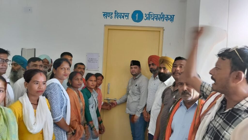 प्रधानों ने मांगों को लेकर ब्लॉक पर जड़ा ताला