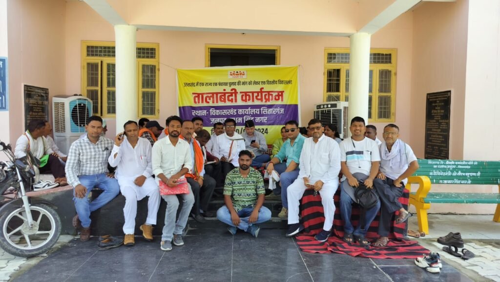 ■सितारगंज। जनपद उधम सिंह नगर में प्रधान संगठन के प्रदेश अध्यक्ष भास्कर संभल के नेतृत्व में उधम सिंह नगर जनपद के समस्त ब्लॉकों में तालाबंदी कि। प्रधानों ने बीडीओ सितारगंज के माध्यम से माननीय मुख्यमंत्री को ज्ञापन प्रेषित किया। प्रदेश अध्यक्ष भास्कर सम्मल ने कहा कि यदि उत्तराखंड त्रिस्तरीय पंचायत संगठन के प्रतिनिधिमंडल को मुख्यमंत्री, पंचायती राजमंत्री , माननीय सचिव पंचायती राज की उपस्थिति में बैठक का आमंत्रण नहीं दिया जाता है तो 3 तारीख को देहरादून में होने वाली मुख्यमंत्री आग्रह यात्रा /आवास कूच कार्यक्रम में उधम सिंह नगर जनपद के समस्त त्रिस्तरीय पंचायत प्रतिनिधि देहरादून पहुंचेंगे ।