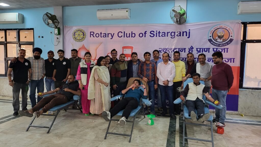 ■सितारगंज। रोटरी क्लब सितारगंज की ओर से रक्तदान शिविर का आयोजन महाराजा अग्रसेन धर्मार्थ ट्रस्ट में किया गया।रुद्रपुर चेरिटेबल ब्लड बैंक ने रक्तदान कराया। रोटरी क्लब के अध्यक्ष मनीष मित्तल ने बताया कि रोटरी क्लब समाज में जरूरतमंदों की सेवार्थ हेतु निरंतर कार्य कर रहा है। विषम परिस्थितियों में रक्त की आवश्यकता पड़ने पर इस प्रकार के कैंपों से रक्त की कमी को पूरा किया जा सकता है। शिविर में महिलाओं ने भी बढ़ चढ़कर रक्तदान किया। शिविर के माध्यम से 50 यूनिट ब्लड को सुरक्षित ब्लड बैंक में पहुंचाया गया। इस मौके पर वरिष्ठ उद्योगपति शिवकुमार मित्तल, अशोक मित्तल, मोहित सिंघल,वरुण अग्रवाल, विशाल मित्तल, योगेश गर्ग,राहुल सिंघल,गौरव जिंदल,गौरव गोयल, कपिल सिंघल, विनय मित्तल, प्रवीन सिंघल,गोपाल सिंघल, वैभव गुप्ता, निखिल अग्रवाल, शुभम अग्रवाल,गौरव अग्रवाल, ज्योति सिंघल,ज्योत्सना गुप्ता, कोमल मित्तल,मेघा अग्रवाल, नेहा जिंदल,सोनिया अग्रवाल, मोनिका सिंघल,नेहा सिंघल आदि मौजूद रहे।