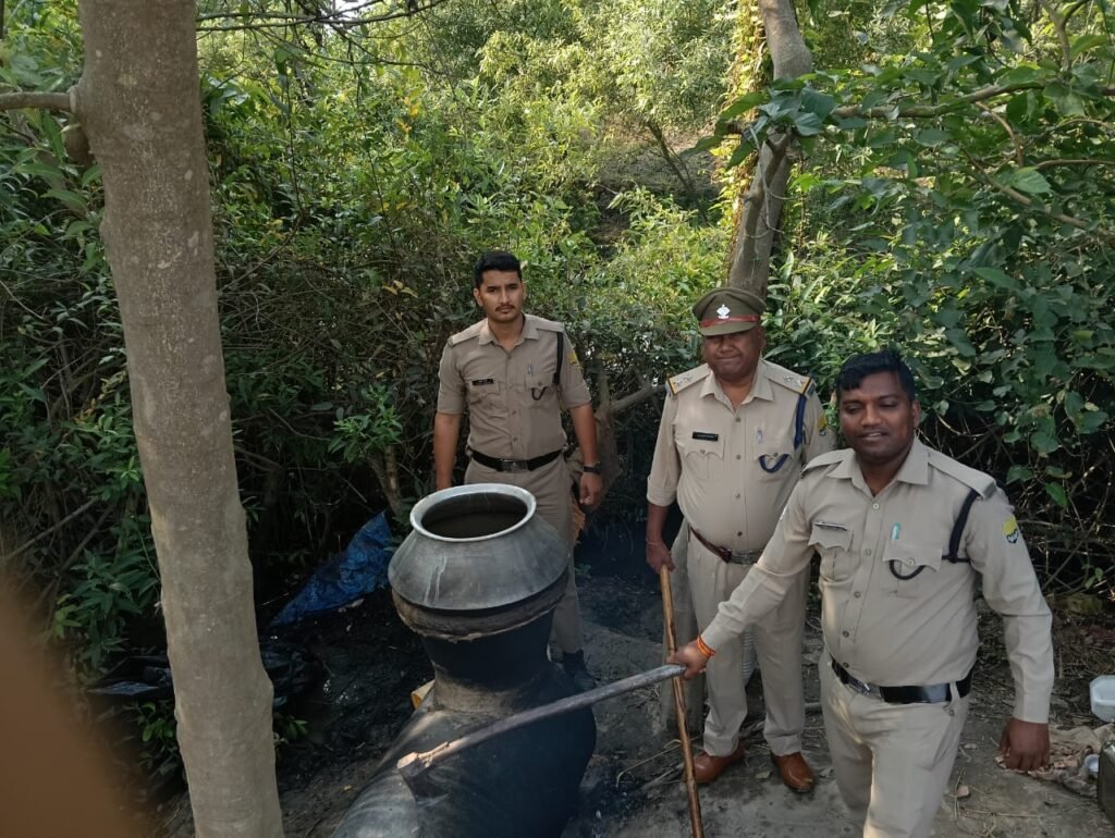 आबकारी विभाग ने मारा छापा, 1800 लीटर नष्ट किया लहन, 105 लीटर शराब बरामद